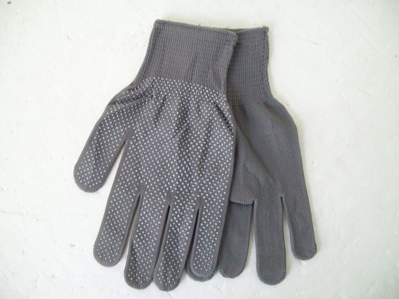 Рукавиці синтетичні сірі з ПВХ крапкою 69054